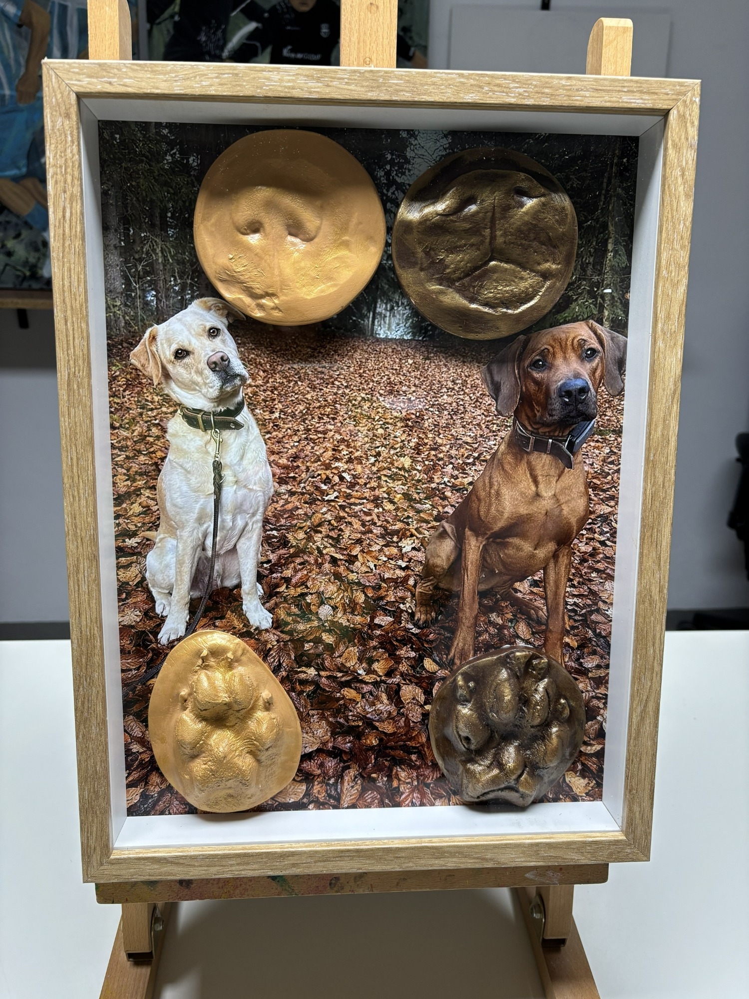 - 2x Tiere je Schnauze und Pfote (4 Abdrücke) im Rahmen 140 €